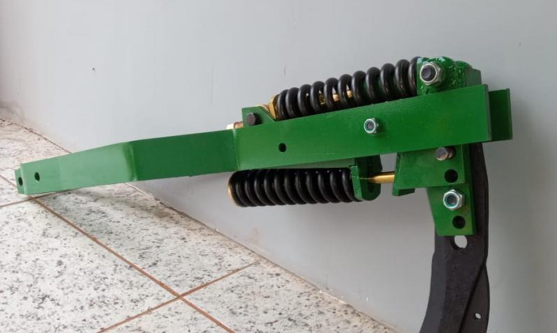 Para áreas com excesso de pedras criamos um produto para resolver o problema do agricultor. Desenvolvemos um sistema de facão com rearme automático adaptável em qualquer plantadeira. Facão de desarme com rearme automático
